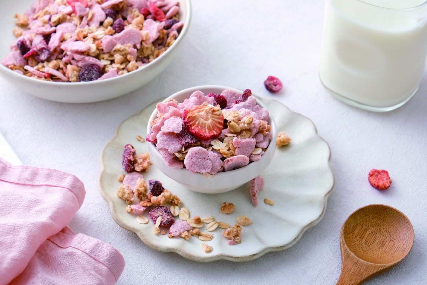 將全穀物麥片結合美國專利BC益生菌,及草莓、蔓越莓酸甜果片,含高膳食纖維。加入牛奶或優格,即可享受美味健康早餐。