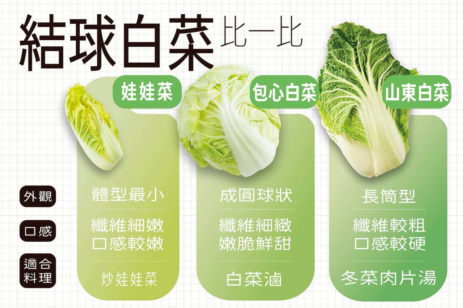 大小個頭差很大!一次搞懂結球白菜家族:包心、山東、娃娃菜選購指南