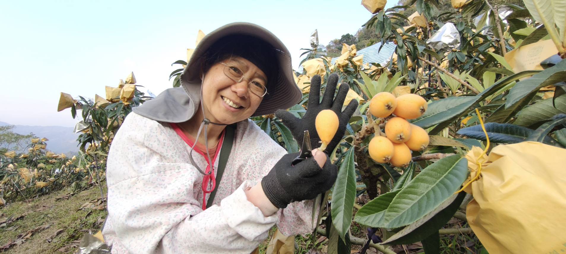 枇杷的採收是慢工出細活的專業,無法假手他人,全靠夫婦倆同心協力以及假日趕回山上的子女幫忙。由於枇杷果實是一整叢包裹在厚實的紙袋中,無法從外觀判斷成熟度,農友每天都必須繞場一周,打開每個袋子逐一檢查。採收時的手法更要精巧,只剪下成熟的果實再將袋子套回,小心呵護避免碰斷脆弱的果蒂,以免其他尚未成熟的心血報銷 。