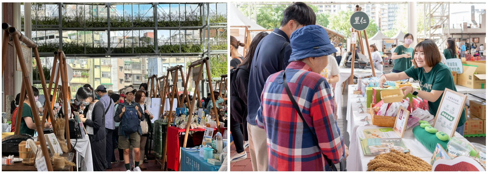 永續低碳市集匯集超過50攤的在地小農、里仁合作廠商、綠色保養品牌與永續職人,提供本土當季蔬果、安心農加工品、天然保養用品、寵物友善產品、蔬食美食與減塑好物等豐富內容,呈現永續生活的多種面貌,吸引許多民眾走訪支持。