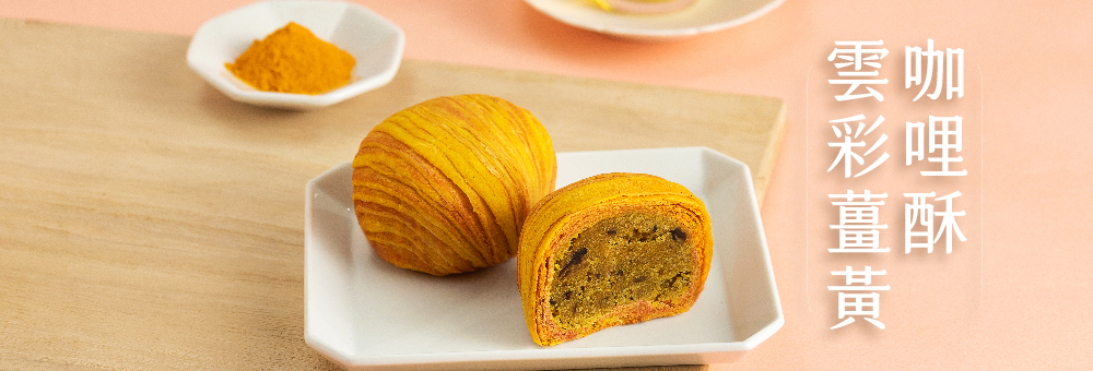 雲彩薑黃咖哩酥無添加人工色素與香料,酥皮的金黃色澤來自薑黃粉。
