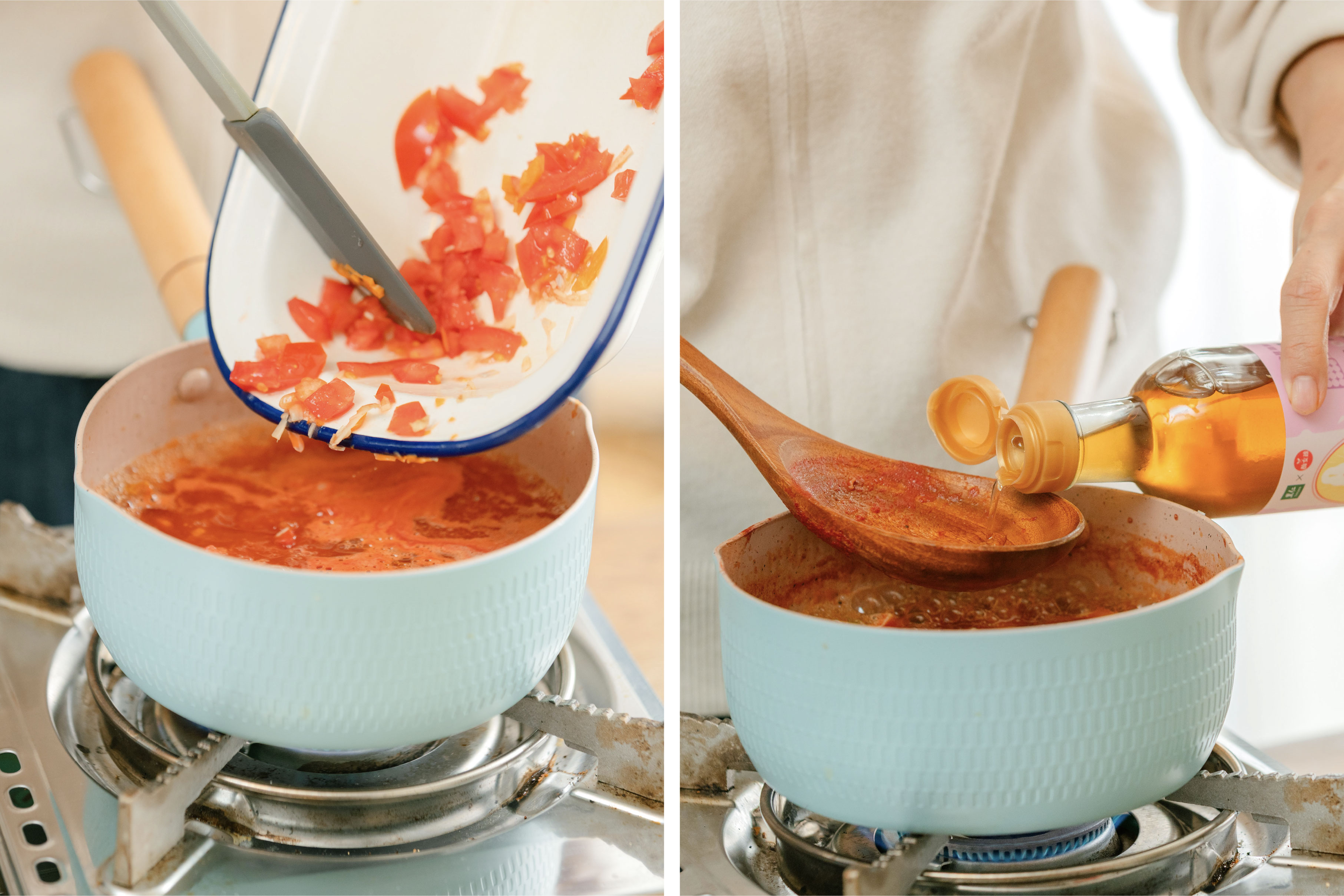 起鍋前淋上一點「淺漬醋」或水果醋,酸性物質能引出番茄的甜味,讓整體風味更鮮明立體,喝起來清爽不膩口。